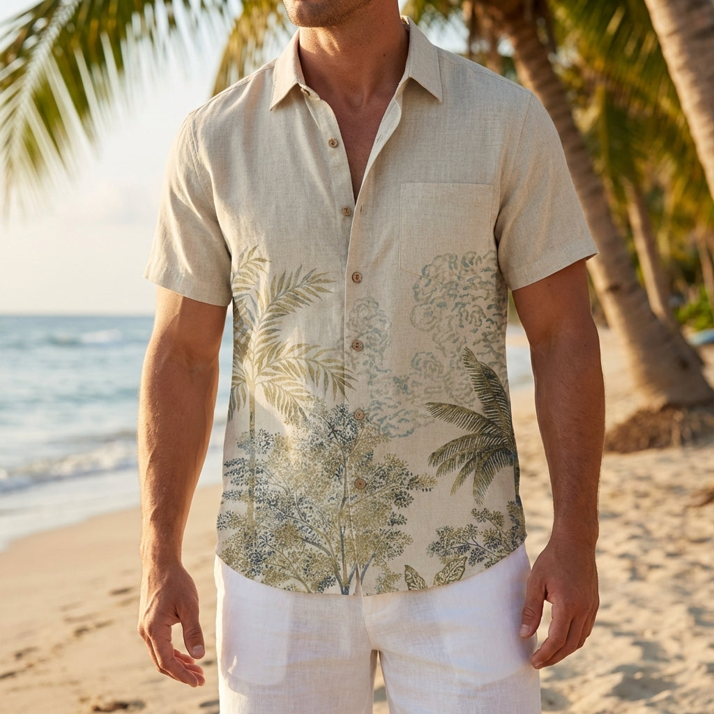 "Embrace island vibes with our Tropical Vibes Hawaiian Shirt. This premium shirt features a vibrant coconut tree motif, adding a touch of Hawaiian flair to your wardrobe. Crafted with high-quality materials for comfort and style. Elevate your look with the spirit of Hawaii."
