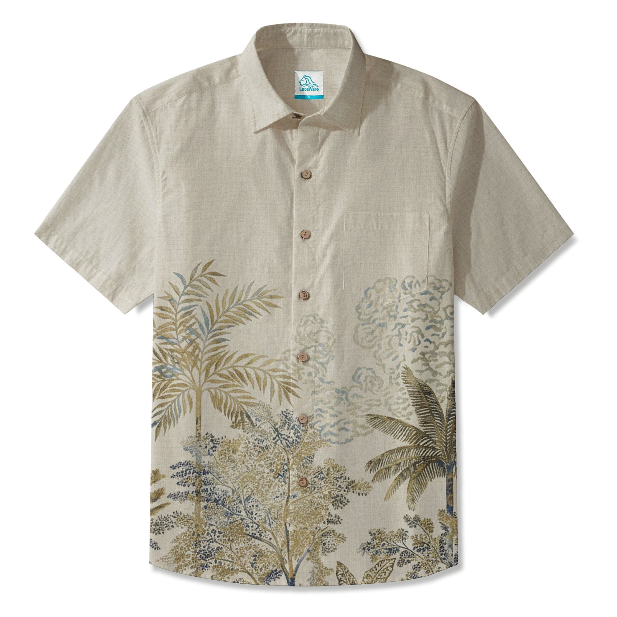 LeosWare® Men's Hawaiian Shirt Short Sleeve Button-up 100% Cotton Aloha Coconut Tree Chest