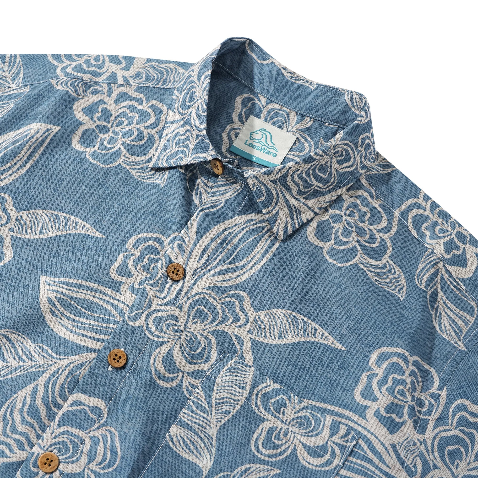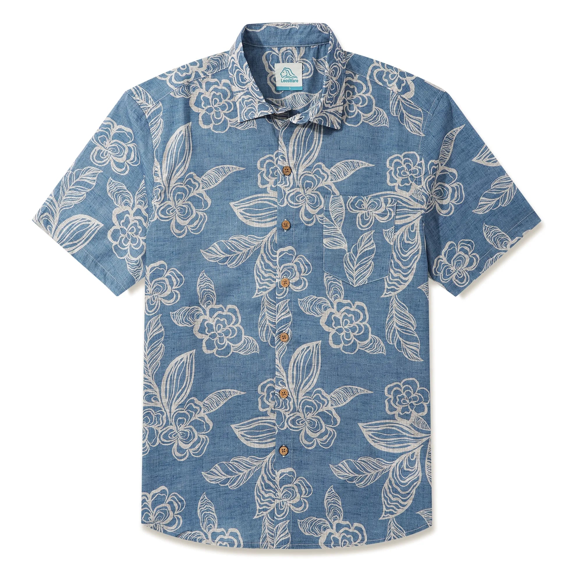 - Botton-up collar, short sleeve, buttons closure, with pocket(s)