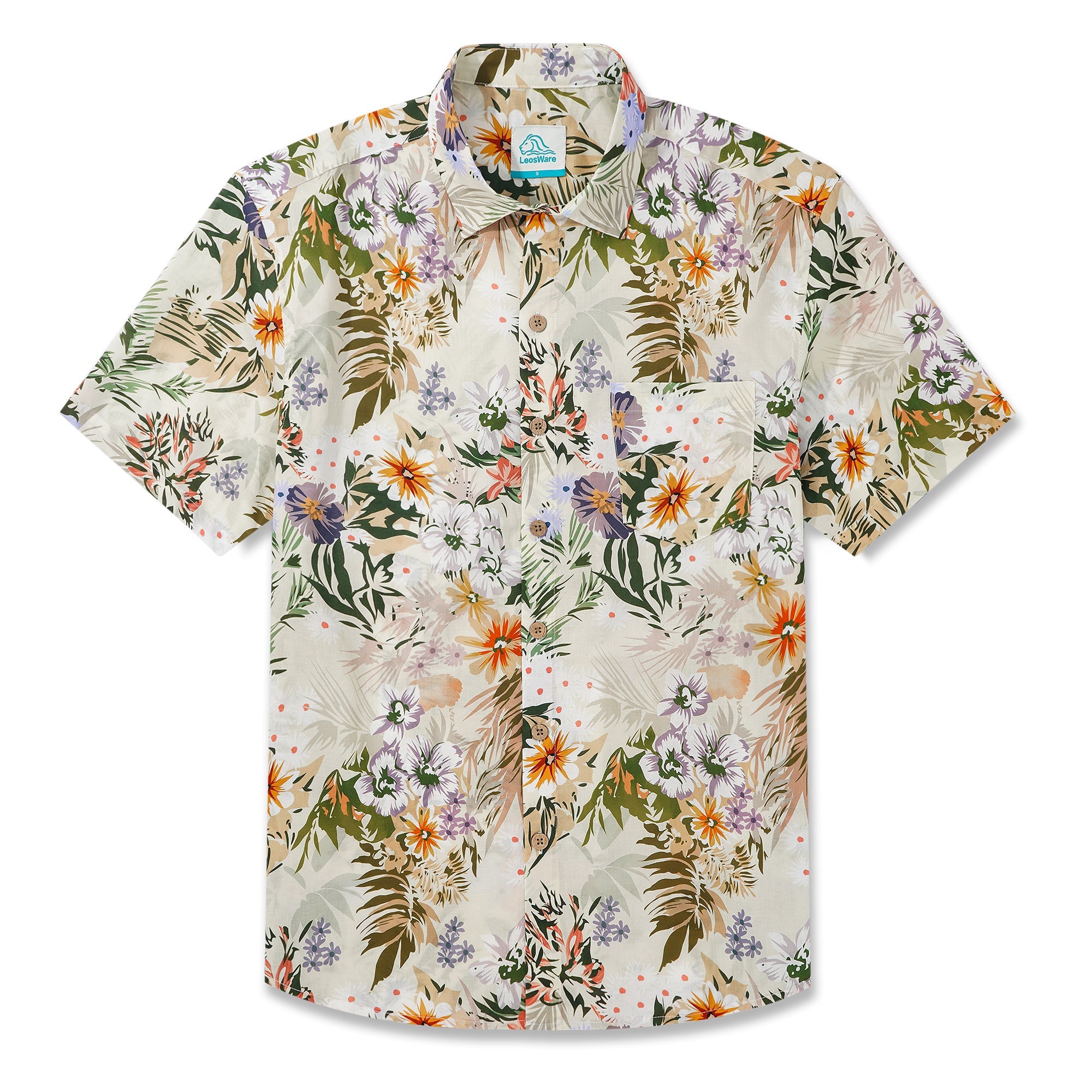 - Botton-up collar, short sleeve, buttons closure, with pocket(s)